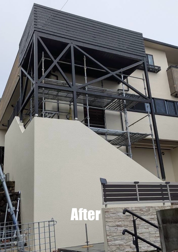 施工前は、経年劣化による痛みが見受けられましたが、施工後は色味もしっかりと出ておりスッキリとした印象を与えてくれます。